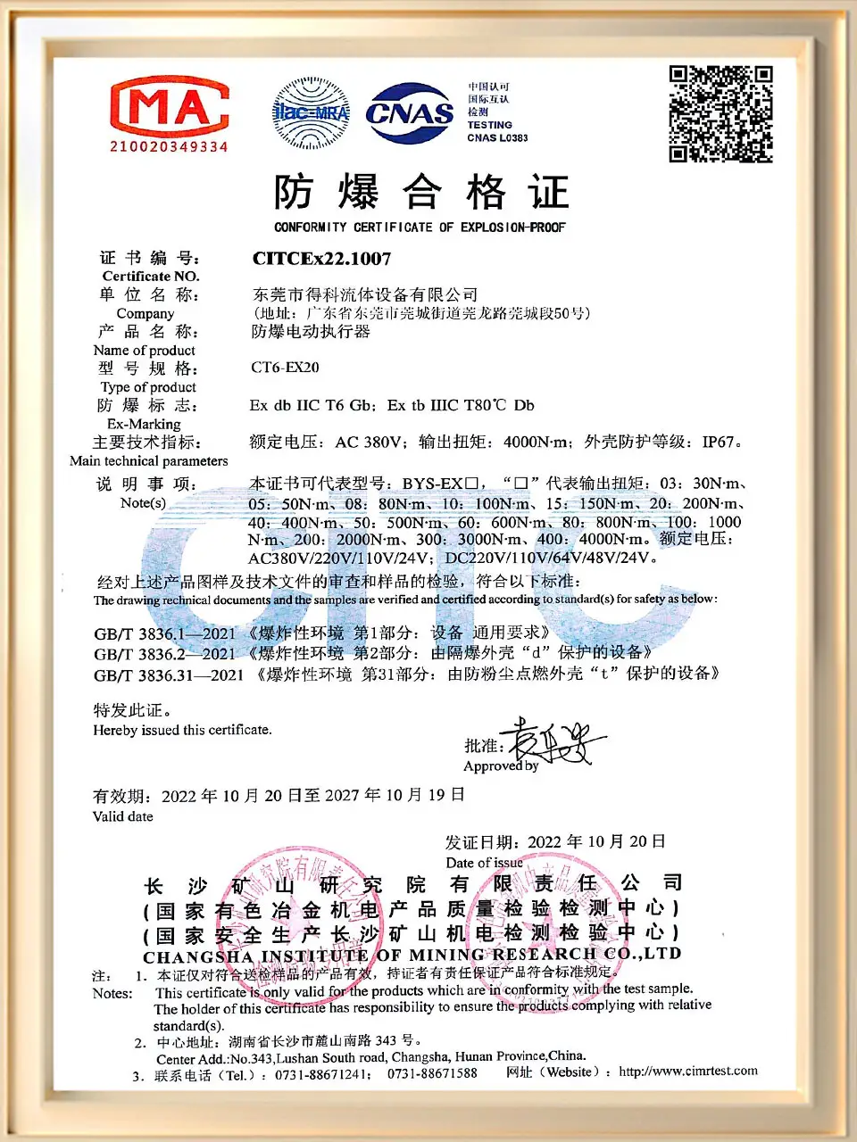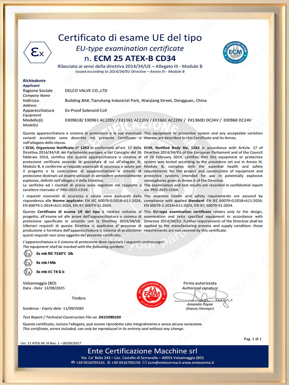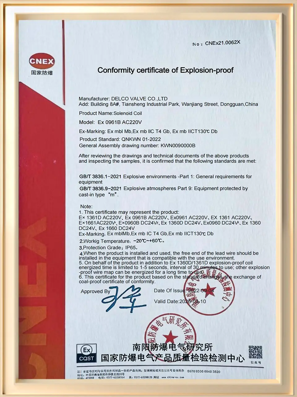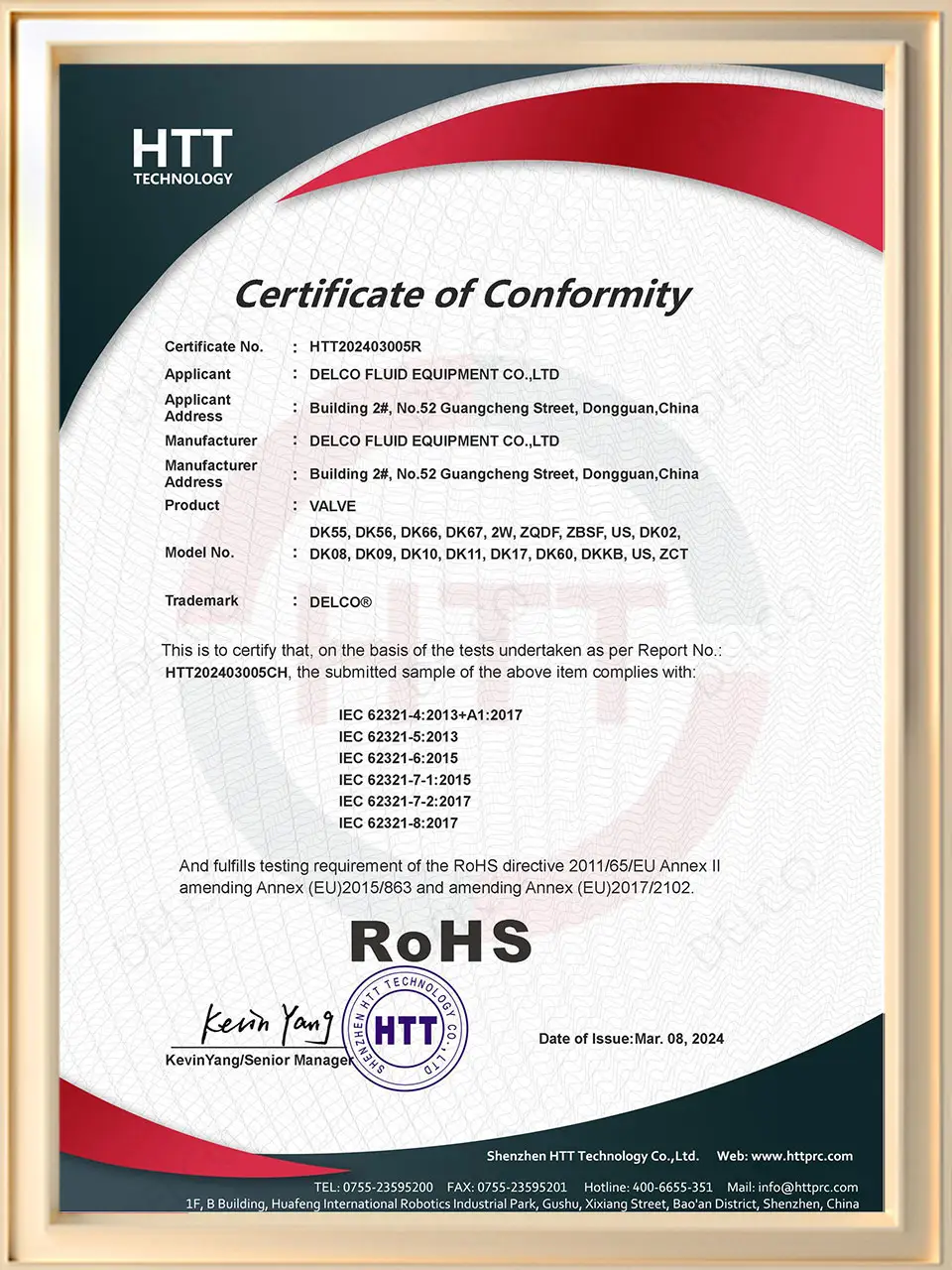 Les vannes et actionneurs Delco sont fabriqués sous un contrôle qualité strict et certifiés par ISO9001, CE, ATEX, et les normes RoHS.