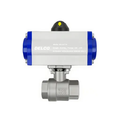 La soupape à billes filetée pneumatique en 2 parties de DELCO série DK66-2PS intègre une vanne à bille en acier inoxydable avec un actionneur pneumatique. Cette vanne se caractérise par sa simplicité, Structure légère et faible couple de fonctionnement, ce qui le rend adapté aux petites à moyennes tailles (DN15-DN50) Canalisations basse pression. Il offre une capacité d’arrêt rapide et une excellente étanchéité, couramment utilisé pour le contrôle automatisé ou manuel dans le traitement de l’eau, CHAUFFAGE (Chauffage, Ventilation, et climatisation), et systèmes de gazoducs.